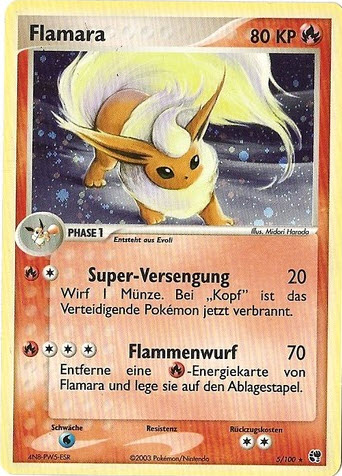 | Alle Karten | Sehen Sie alle Flamara-Pokémonkarten in einer Übersicht. |