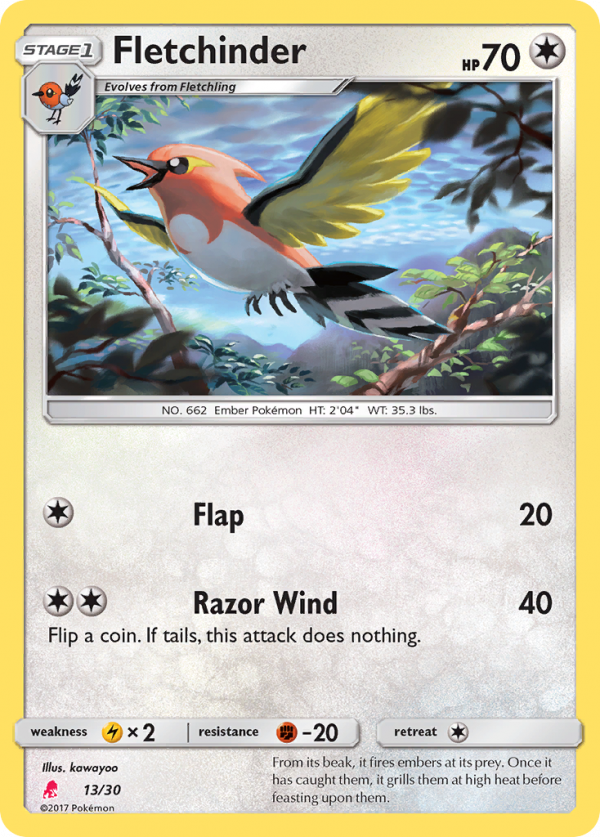 | Kaufen? | Kaufen Sie Ihre Fletchinder Pokemon-Karte aus dem SM Trainer Kit Lycanroc-Erweiterung. |