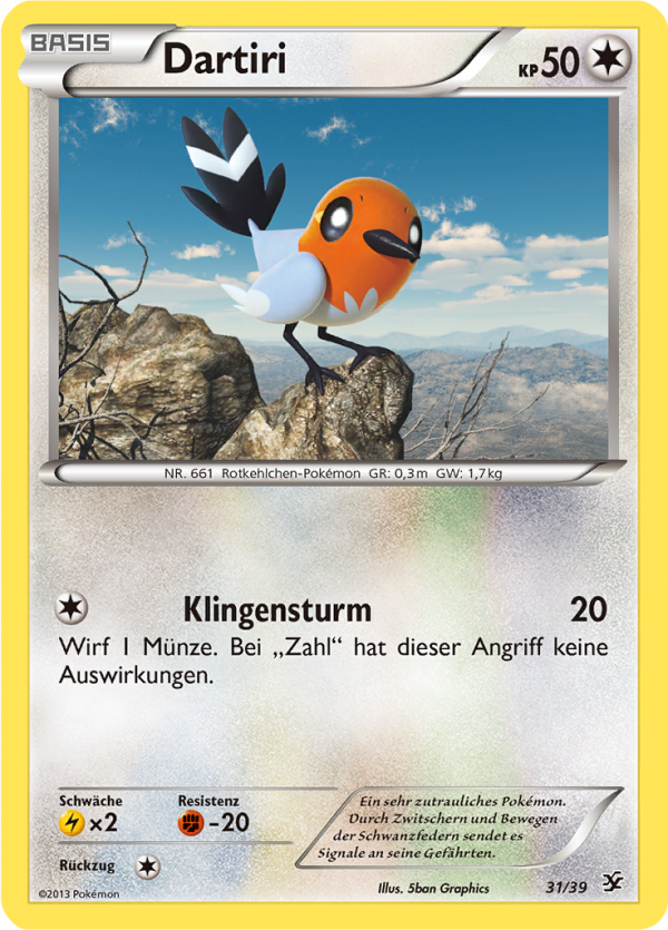 | Kaufen? | Kaufen Sie Ihre Dartiri Pokemon-Karte aus dem Willkommen in Kalos-Erweiterung. |