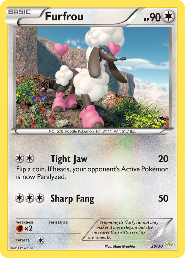 | Kaufen? | Kaufen Sie Ihre Furfrou Pokemon-Karte aus dem XY Trainer Kit Noivern-Erweiterung. |