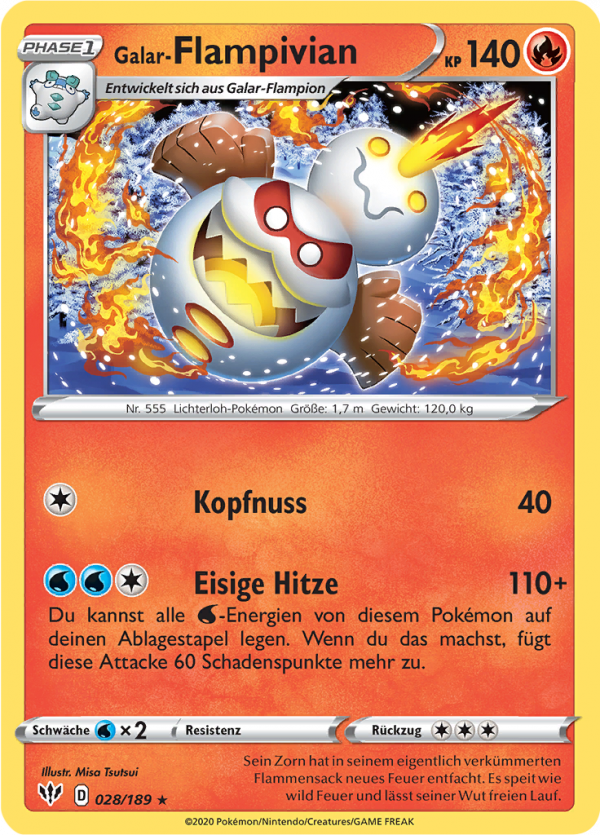 | Kaufen? | Kaufen Sie Ihre Galar-Flampivian Pokemon-Karte aus dem Flammende Finsternis-Erweiterung. |