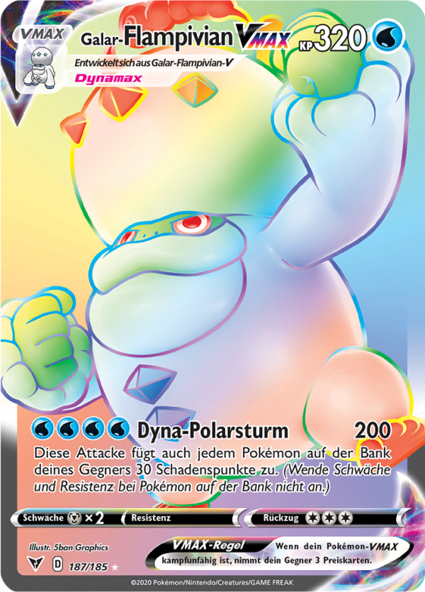 | Kaufen? | Kaufen Sie Ihre Galar-Flampivian VMAX Pokemon-Karte aus dem Farbenschock-Erweiterung. |