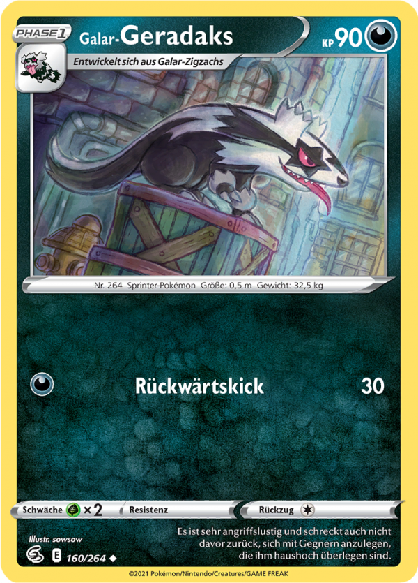 | Kaufen? | Kaufen Sie Ihre Galar-Geradaks Pokemon-Karte aus dem Fusionsangriff-Erweiterung. |