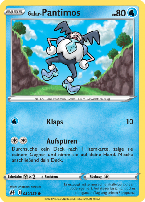 | Kaufen? | Kaufen Sie Ihre Galar-Pantimos Pokemon-Karte aus dem Glänzendes Schicksal - Schillernde Schatzkammer-Erweiterung. |