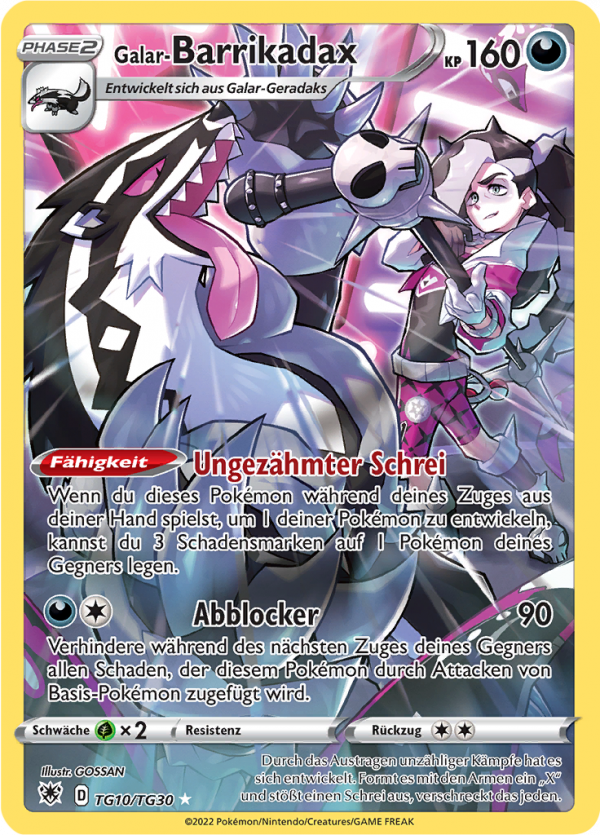 | Kaufen? | Kaufen Sie Ihre Galar-Barrikadax Pokemon-Karte aus dem Astralglanz - Trainergalerie-Erweiterung. |