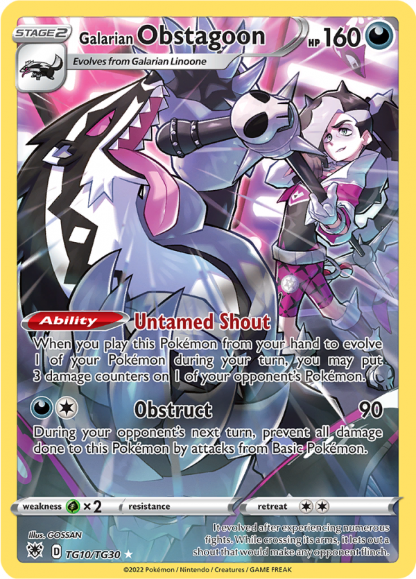 | Kaufen? | Kaufen Sie Ihre Galarian Obstagoon Pokemon-Karte aus dem Astral Radiance - Trainer Gallery-Erweiterung. |