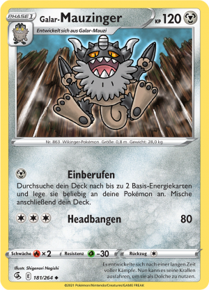 | Kaufen? | Kaufen Sie Ihre Galar-Mauzinger Pokemon-Karte aus dem Glänzendes Schicksal - Schillernde Schatzkammer-Erweiterung. |