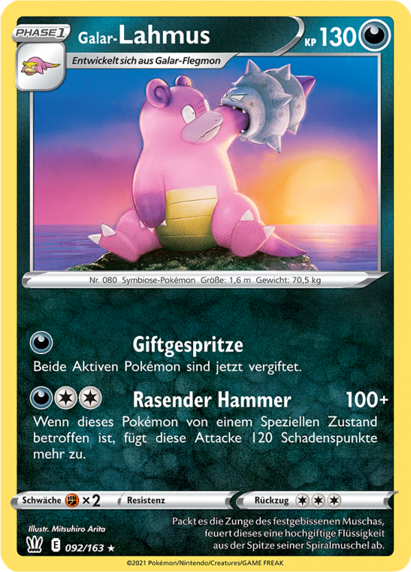 | Kaufen? | Kaufen Sie Ihre Galar-Lahmus Pokemon-Karte aus dem Kampfstile-Erweiterung. |