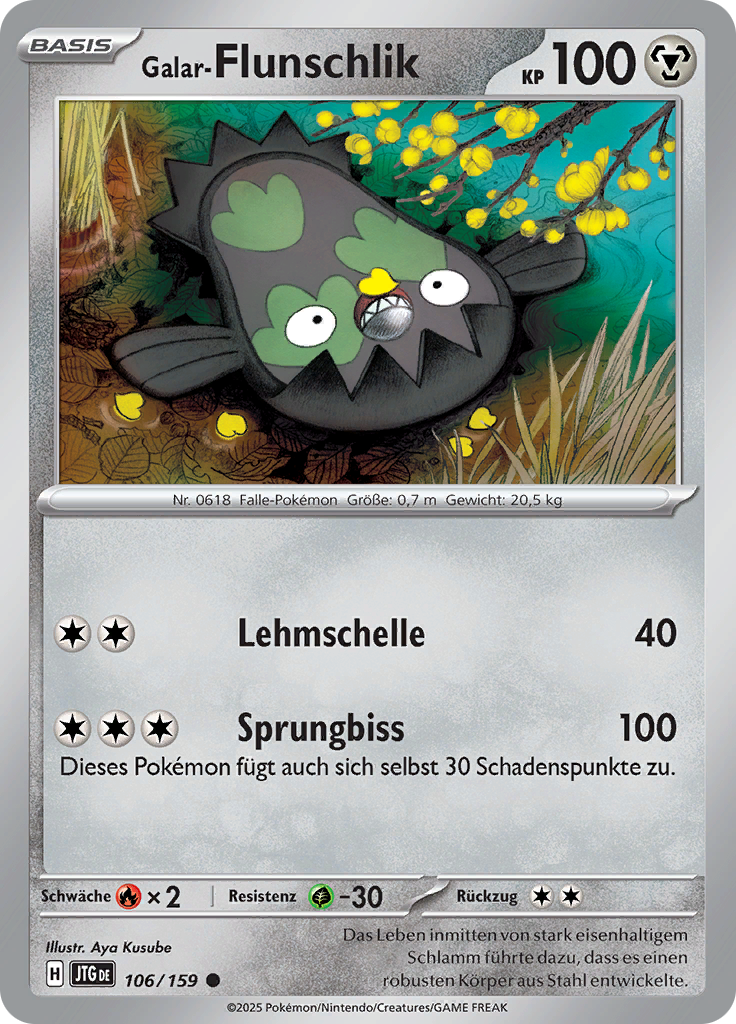 | Kaufen? | Kaufen Sie Ihre Galar-Flunschlik Pokemon-Karte aus dem Reisegefahrten-Erweiterung. |
