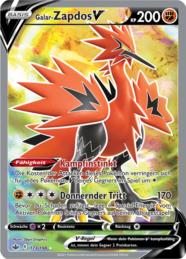 | Kaufen? | Kaufen Sie Ihre Galar-Zapdos V Pokemon-Karte aus dem Schaurige Herrschaft-Erweiterung. |