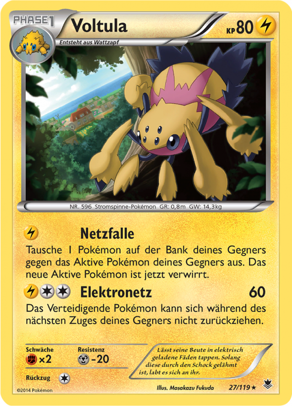 | Kaufen? | Kaufen Sie Ihre Voltula Pokemon-Karte aus dem Phantomkräfte-Erweiterung. |