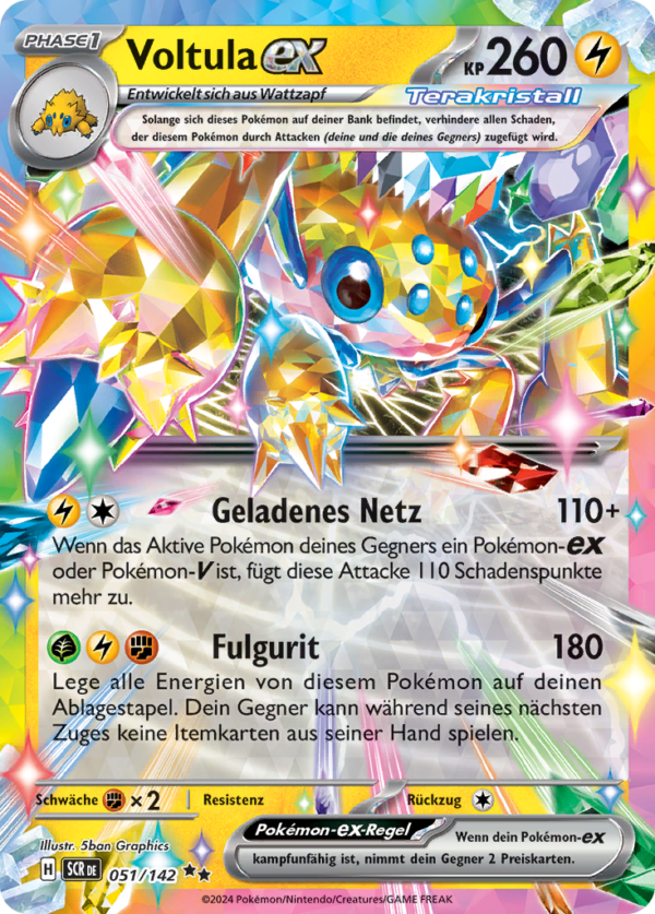 | Kaufen? | Kaufen Sie Ihre Voltula Pokemon-Karte aus dem Stellarkrone-Erweiterung. |