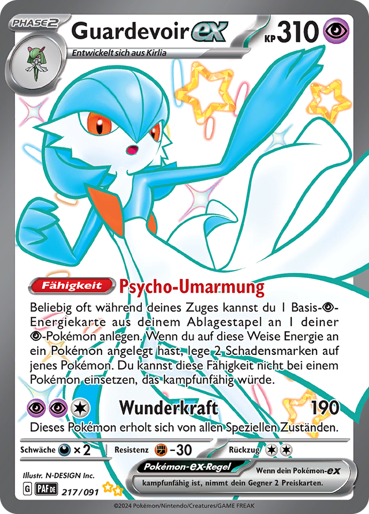 | Kaufen? | Kaufen Sie Ihre Guardevoir-ex Pokemon-Karte aus dem Paldeas Schicksale-Erweiterung. |