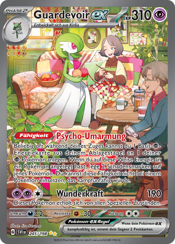 | Kaufen? | Kaufen Sie Ihre Guardevoir-EX Pokemon-Karte aus dem Karmesin & Purpur-Erweiterung. |