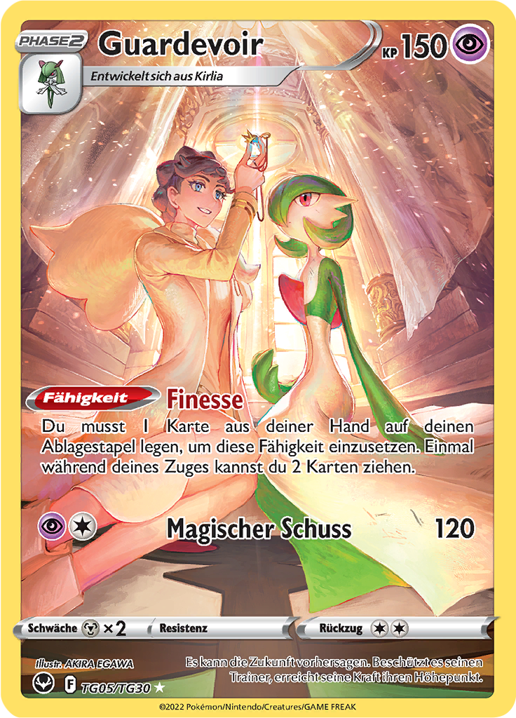 | Kaufen? | Kaufen Sie Ihre Guardevoir Pokemon-Karte aus dem Silberne Sturmwinde - Trainergalerie-Erweiterung. |