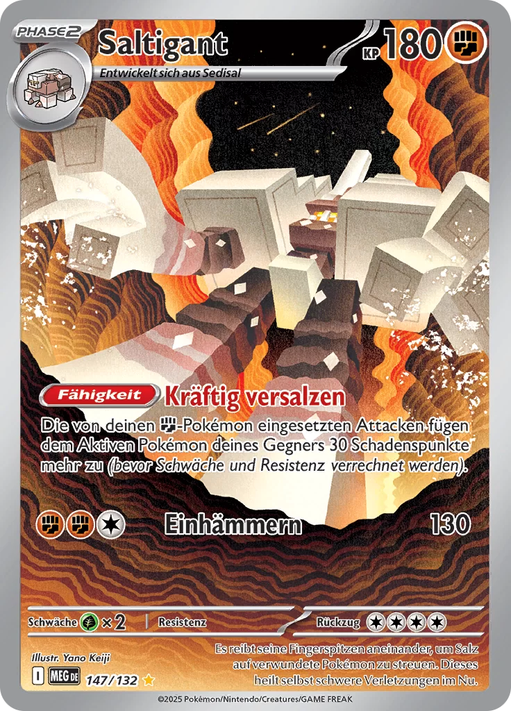 | Kaufen? | Kaufen Sie Ihre Saltigant Pokemon-Karte aus dem Mega-Entwicklung-Erweiterung. |