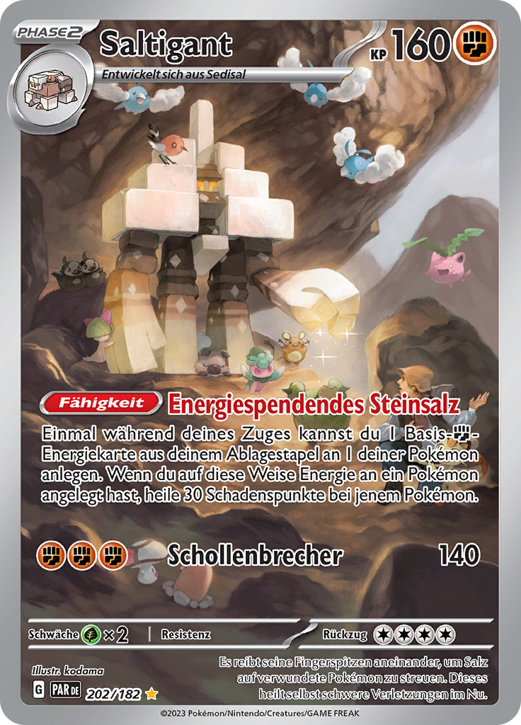 | Kaufen? | Kaufen Sie Ihre Saltigant Pokemon-Karte aus dem Paradoxrift-Erweiterung. |