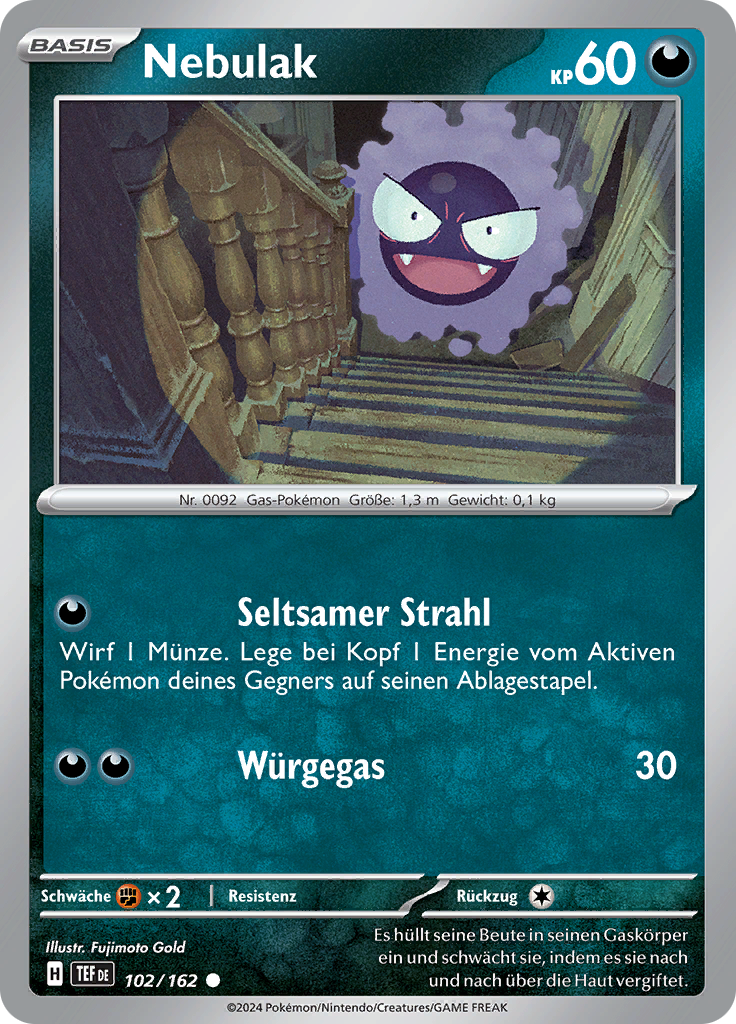 | Kaufen? | Kaufen Sie Ihre Nebulak Pokemon-Karte aus dem Gewalten der Zeit-Erweiterung. |