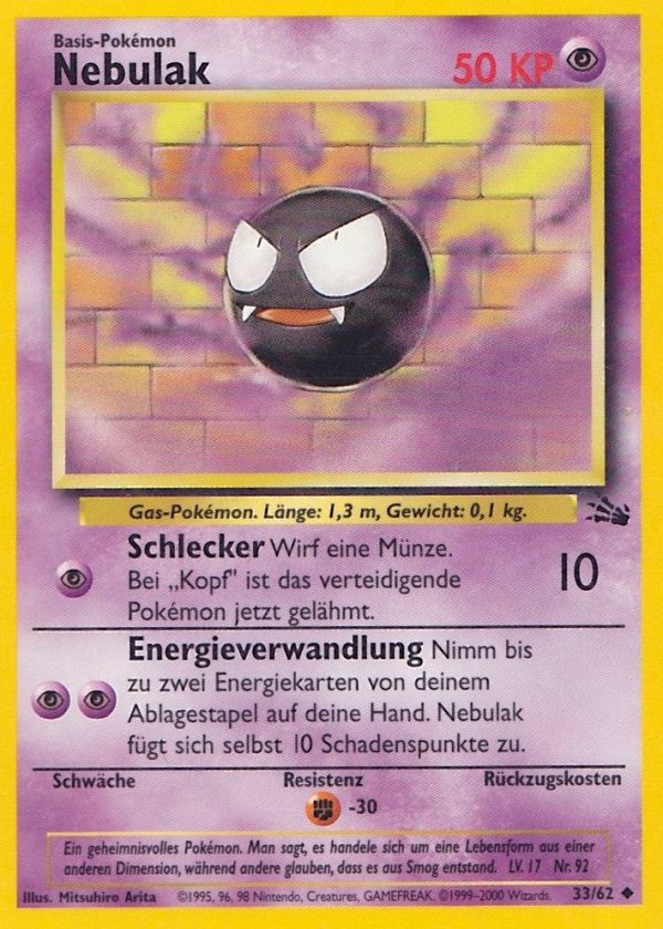 | Kaufen? | Kaufen Sie Ihre Nebulak Pokemon-Karte aus dem Fossil-Erweiterung. |