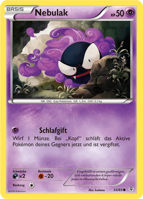 | Kaufen? | Kaufen Sie Ihre Nebulak Pokemon-Karte aus dem Generationen-Erweiterung. |