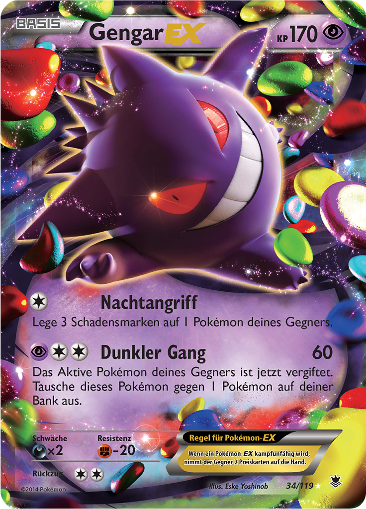 | Kaufen? | Kaufen Sie Ihre Gengar-EX Pokemon-Karte aus dem Phantomkräfte-Erweiterung. |