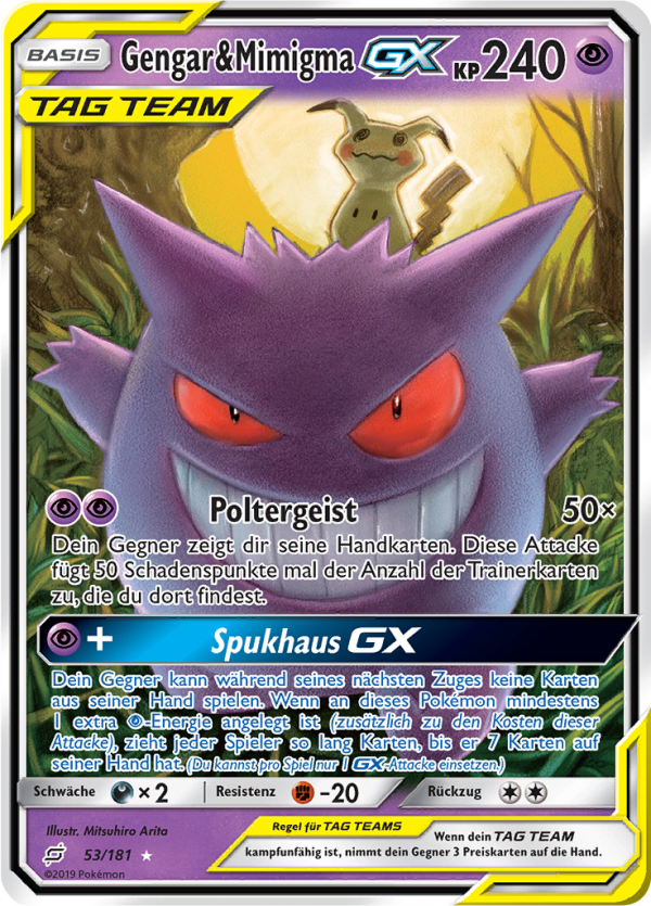 | Kaufen? | Kaufen Sie Ihre Gengar & Mimigma-GX Pokemon-Karte aus dem Teams sind Trumpf-Erweiterung. |