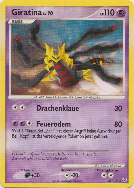 | Kaufen? | Kaufen Sie Ihre Giratina Pokemon-Karte aus dem Platin-Erweiterung. |