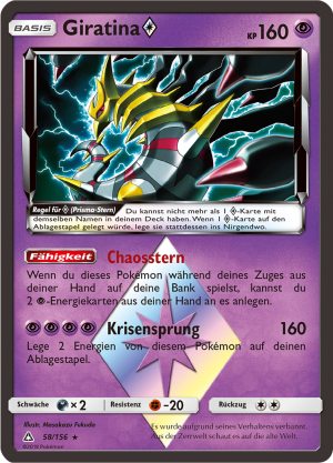 | Alle Karten | Sehen Sie alle Giratina-Pokémonkarten in einer Übersicht. |