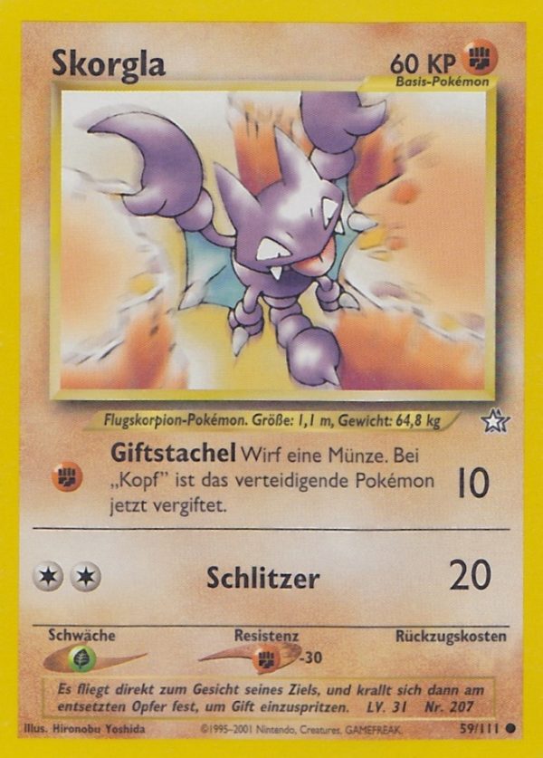 | Kaufen? | Kaufen Sie Ihre Skorgla Pokemon-Karte aus dem Neo Genesis-Erweiterung. |