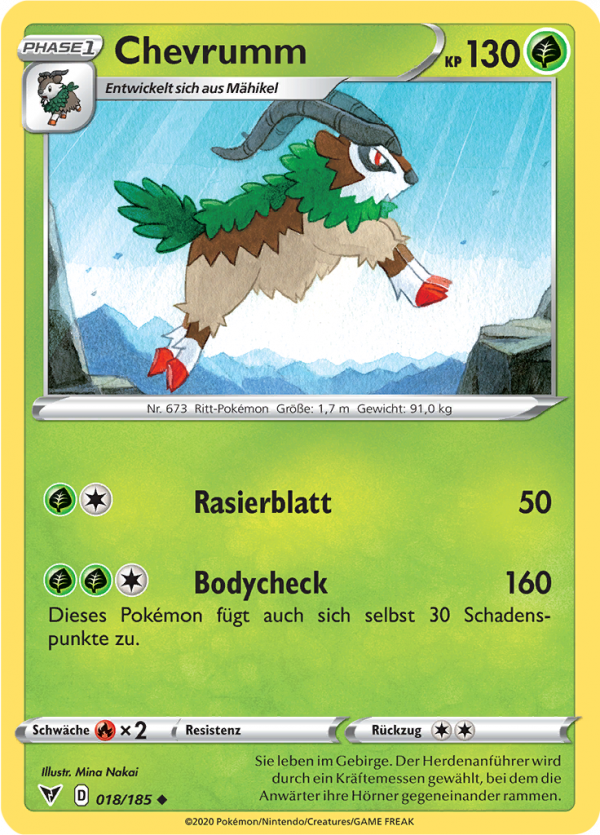 | Kaufen? | Kaufen Sie Ihre Chevrumm Pokemon-Karte aus dem Farbenschock-Erweiterung. |