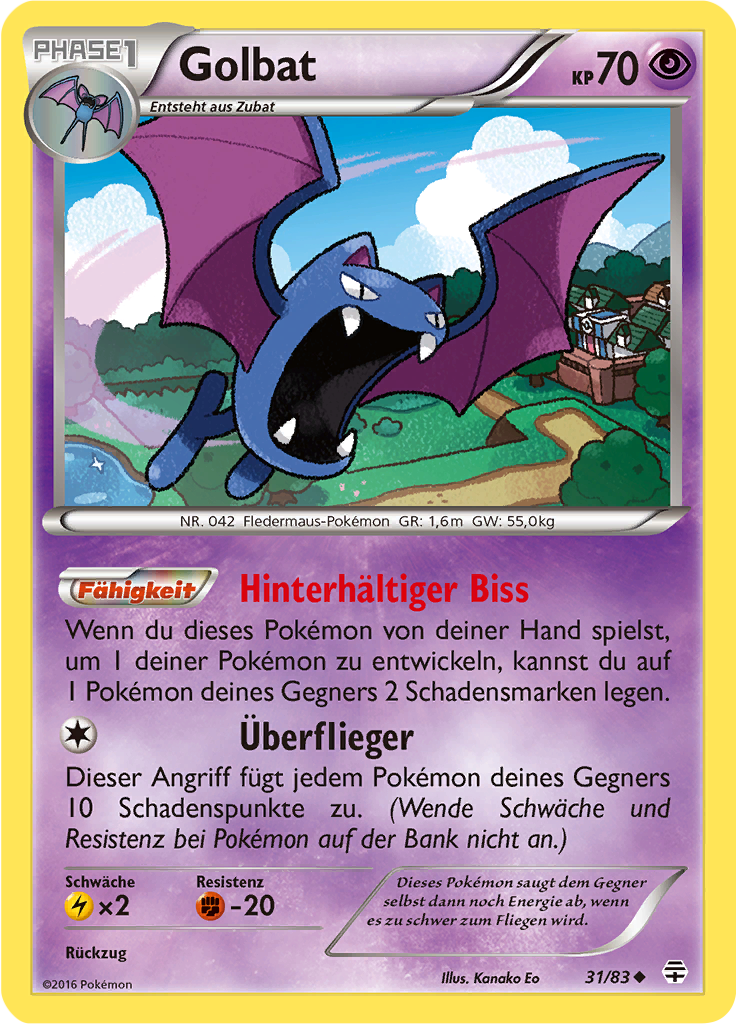 | Kaufen? | Kaufen Sie Ihre Golbat Pokemon-Karte aus dem Generationen-Erweiterung. |