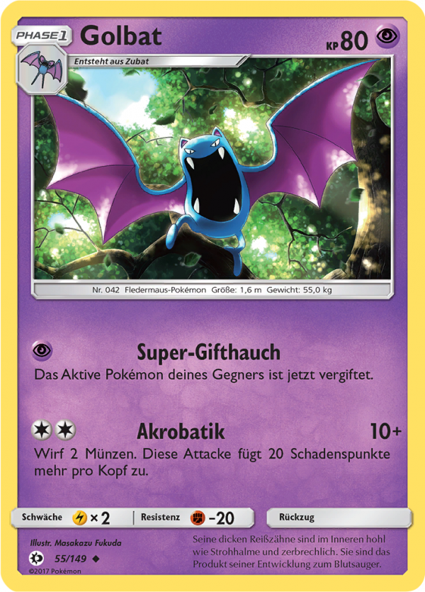 | Kaufen? | Kaufen Sie Ihre Golbat Pokemon-Karte aus dem Sonne & Mond-Erweiterung. |