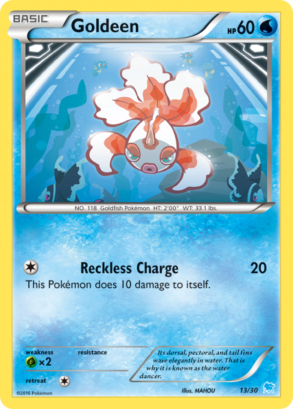 | Kaufen? | Kaufen Sie Ihre Goldeen Pokemon-Karte aus dem XY Trainer Kit Suicine-Erweiterung. |