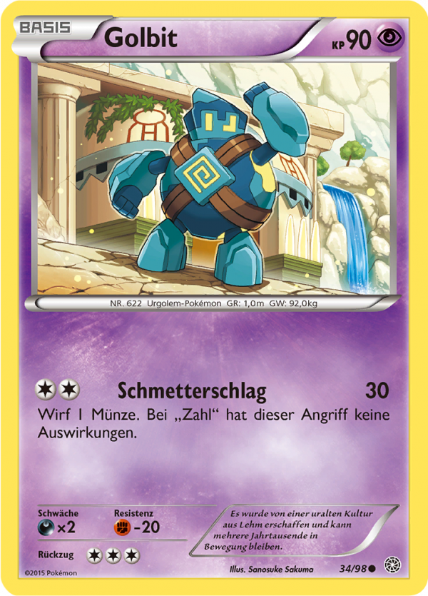 | Kaufen? | Kaufen Sie Ihre Golbit Pokemon-Karte aus dem Ewiger Anfang-Erweiterung. |