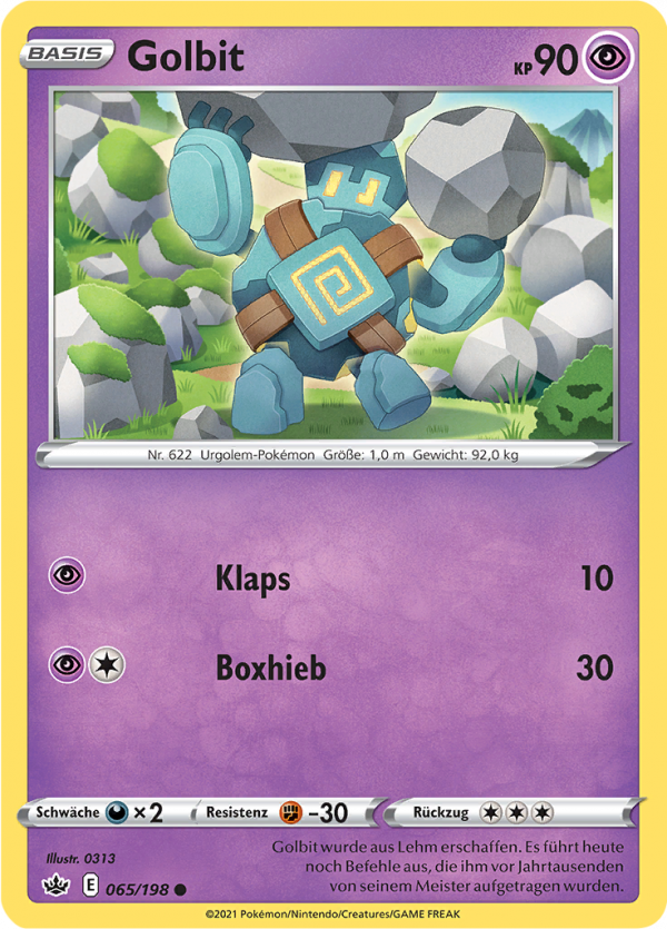 | Kaufen? | Kaufen Sie Ihre Golbit Pokemon-Karte aus dem Schaurige Herrschaft-Erweiterung. |