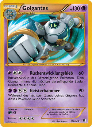 | Kaufen? | Kaufen Sie Ihre Golgantes Pokemon-Karte aus dem Schwarze Blitze-Erweiterung. |