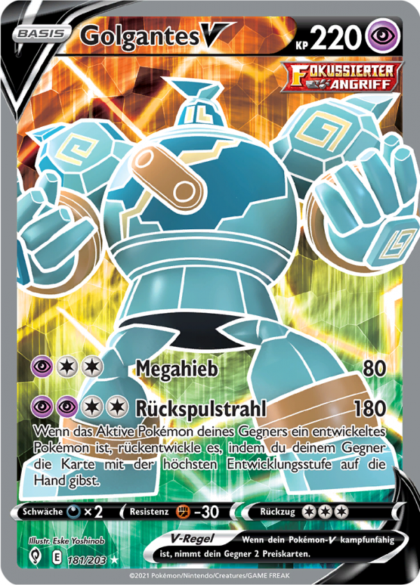 | Kaufen? | Kaufen Sie Ihre Golgantes V Pokemon-Karte aus dem Drachenwandel-Erweiterung. |