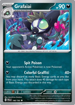 | Kaufen? | Kaufen Sie Ihre Grafaiai Pokemon-Karte aus dem Paldea Evolved-Erweiterung. |