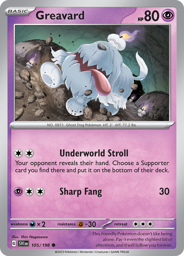 | Kaufen? | Kaufen Sie Ihre Greavard Pokemon-Karte aus dem Scarlet & Violet-Erweiterung. |