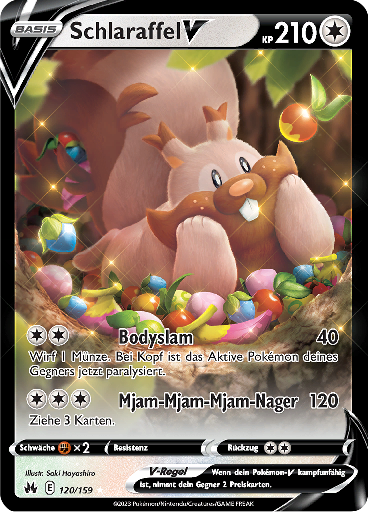 | Kaufen? | Kaufen Sie Ihre Schlaraffel V Pokemon-Karte aus dem Zenit der Könige-Erweiterung. |