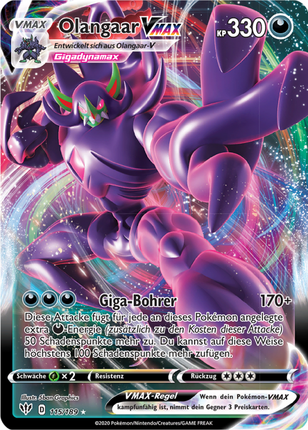 | Kaufen? | Kaufen Sie Ihre Olangaar VMAX Pokemon-Karte aus dem Flammende Finsternis-Erweiterung. |