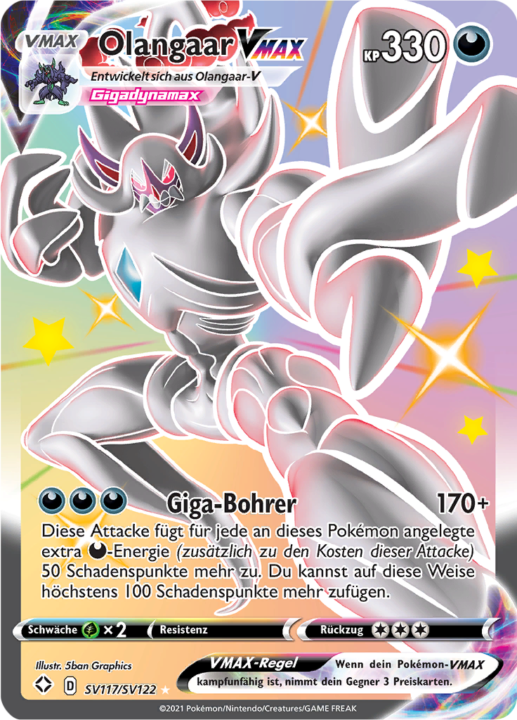 | Kaufen? | Kaufen Sie Ihre Olangaar VMAX Pokemon-Karte aus dem Glänzendes Schicksal - Schillernde Schatzkammer-Erweiterung. |