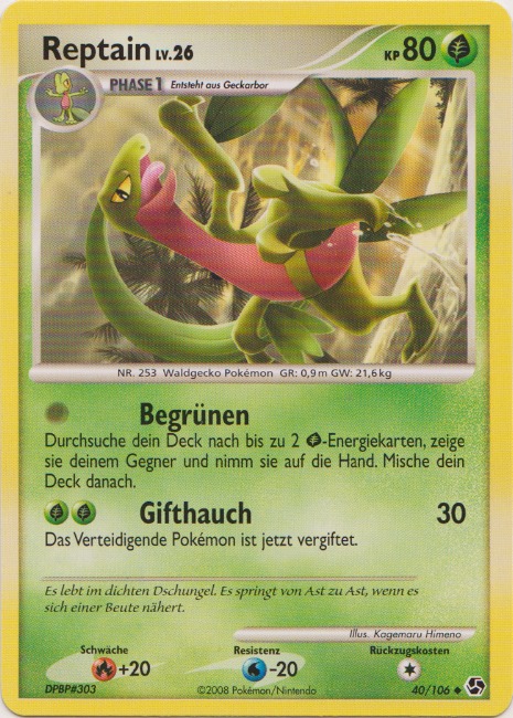| Alle Karten | Sehen Sie alle Reptain-Pokémonkarten in einer Übersicht. |