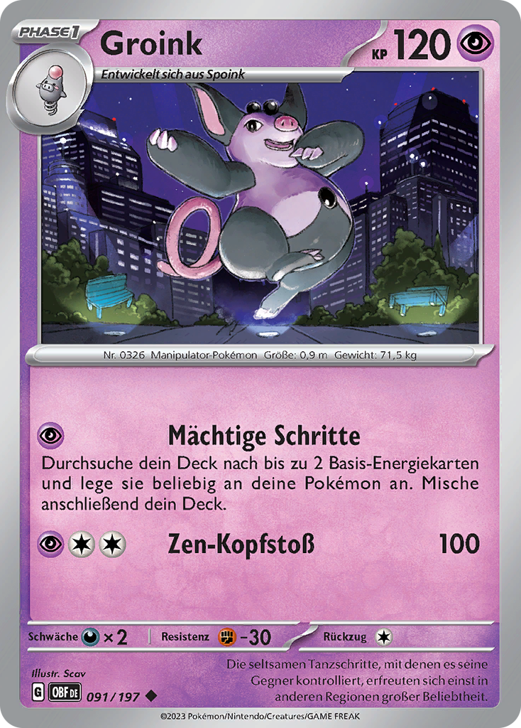 | Kaufen? | Kaufen Sie Ihre Groink Pokemon-Karte aus dem Obsidianflammen-Erweiterung. |