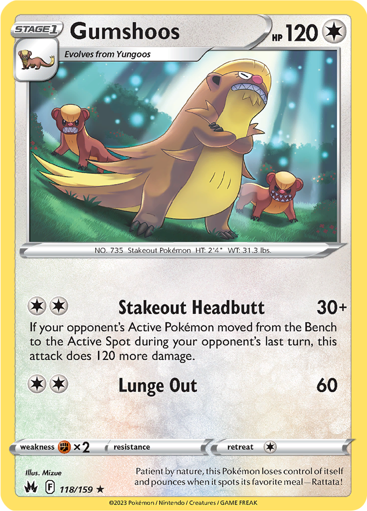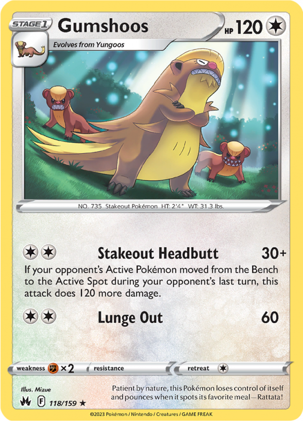 | Kaufen? | Kaufen Sie Ihre Gumshoos Pokemon-Karte aus dem Crown Zenith-Erweiterung. |
