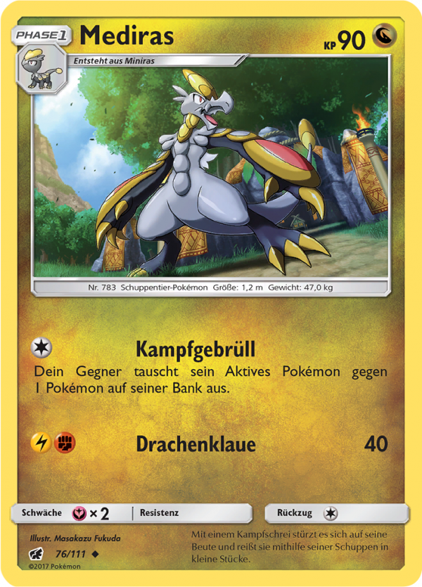 | Kaufen? | Kaufen Sie Ihre Mediras Pokemon-Karte aus dem Aufziehen der Sturmröte-Erweiterung. |