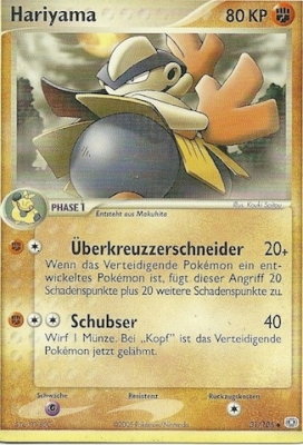 | Kaufen? | Kaufen Sie Ihre Hariyama Pokemon-Karte aus dem Smaragd-Erweiterung. |