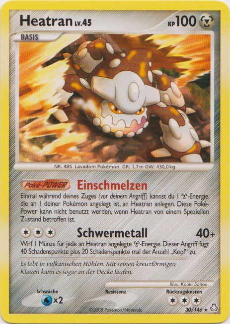 | Kaufen? | Kaufen Sie Ihre Heatran Pokemon-Karte aus dem Erwachte Legenden-Erweiterung. |