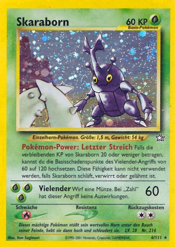 | Kaufen? | Kaufen Sie Ihre Skaraborn Pokemon-Karte aus dem Neo Genesis-Erweiterung. |