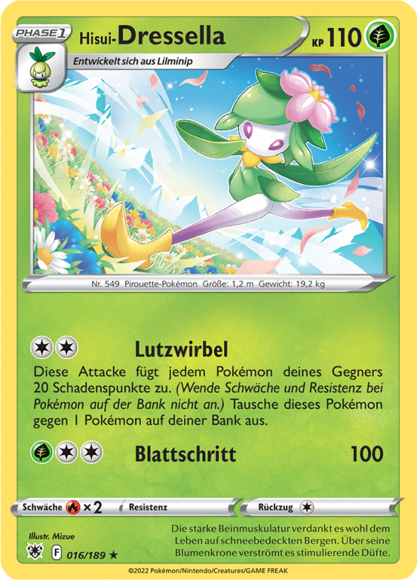 | Kaufen? | Kaufen Sie Ihre Hisui-Dressella Pokemon-Karte aus dem Astralglanz-Erweiterung. |